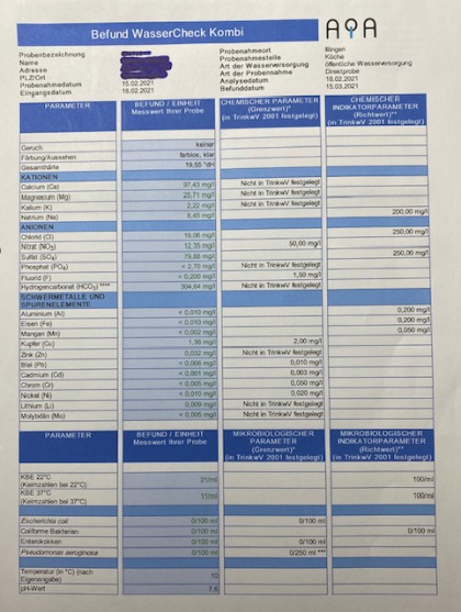 mit dem Wasserbehandler "Wasser24" behandeltes Trinkwasser aus dem selben Wasserhahn wie Bild 1